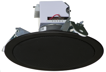 Our popular 5-inch ceiling speaker is now available in black. Like the existing white PSS5, the black speaker features a one-shot mounting system. It has a DC-blocking capacitor and 100 Volt line transformer to ensure compatibility with monitored 100 Volt rms evacuation systems.