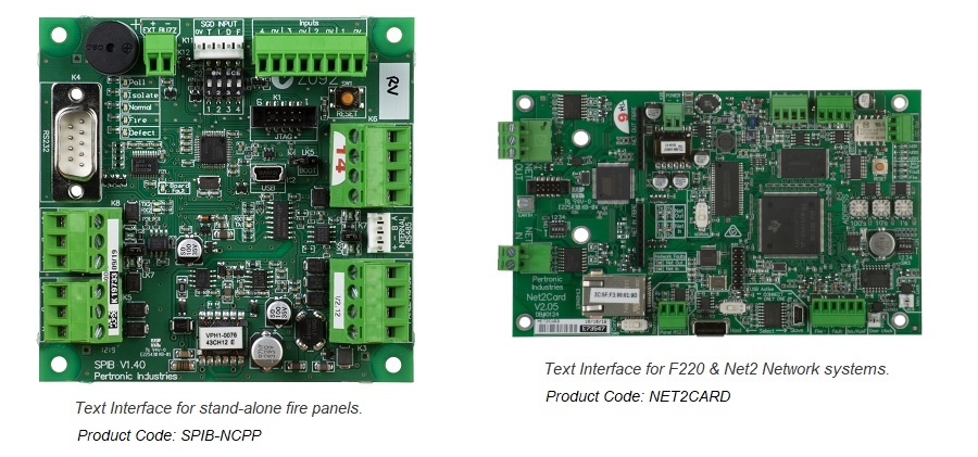 In F220 Network systems with v7 or later firmware, the text interface consists of a dedicated Net2 Network Card configured in FireUtils® as a Printer/Pager Node.