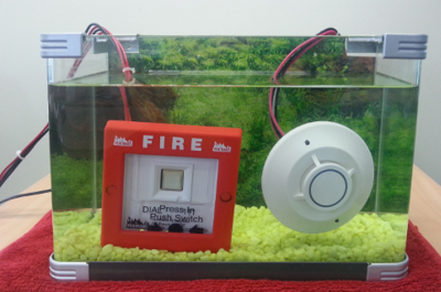 When we developed the Mk2 version of our weatherproof manual call points last year our testing confirmed they easily achieved an IP 65 rating. We knew they were better than that. So we installed a Pertronic weatherproof call point and a System Sensor IP 67 analogue addressable heat detector underwater in a fish tank. Four months later they were still working perfectly. Armed with the results of this not quite scientific test, we believe our weatherproof call points achieve a better rating than IP 65.