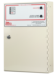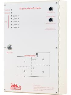 Fire alarm control panel with five conventional detection zone circuits. Complies with the requirements of NZS 4512:2021